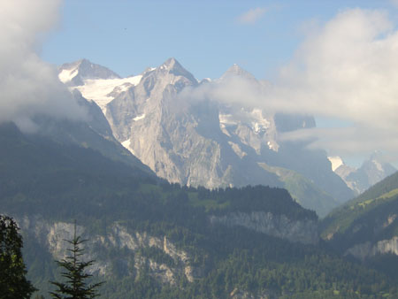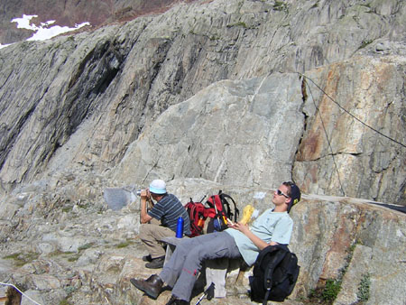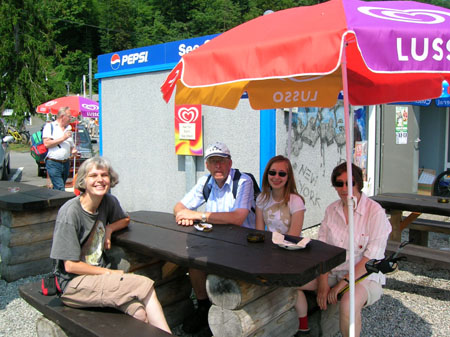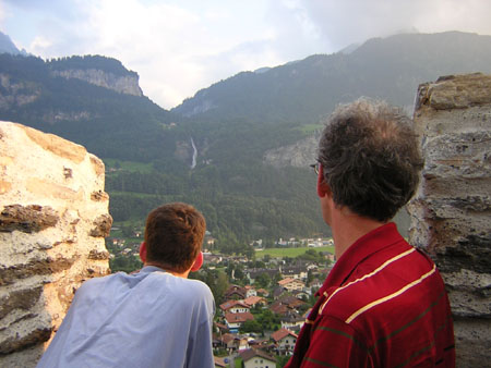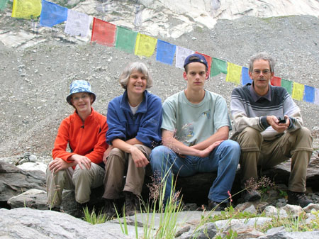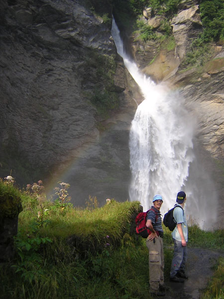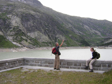 groepsfoto Zomervakantie in het Haslital, voor iedereen de eerste keer. Ook zónder kinderen zijn we hier zelden geweest. Het is een vakantie van uitersten. Twee dagen continu regen, maar dan ook echt continu. En een werkelijk fantastische tocht naar (en over) de Triftbrücke. Een enorme kudde gemzen bij de Lauteraarhütte. Zeker niet mislukt, die vakantie van 2005 maar toch ... Meiringen is nét niet ‘bergs’ genoeg en we hebben veel in de auto gezeten. |