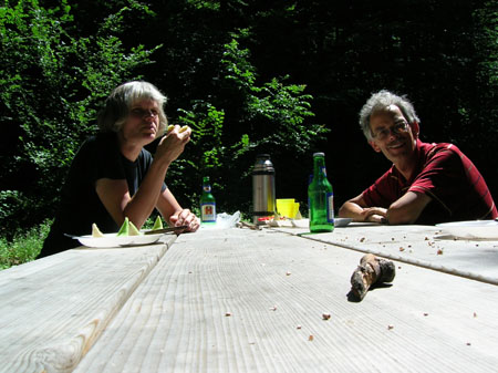 Dag 1: Rondje HaslitalNa de reis vanuit Nederland eerst uitpakken bij Chalet Bernadette en daarna het traditionele ommetje door het dal. Meiringen ligt laag, en mist daardoor een beetje het bergdorpgevoel. Dag 2: BächlitalhütteEerst met de auto richting Grimsel, en daar verder omhoog. Het hutje dat vandaag ons doel is, ligt mooi op een rotskop. Dag 3: EngelhornhütteGeen echt lange tocht, wel één van de bekendste van het dal: langs de Reichenbachfall waar Conan Doyle zijn superheld Sherlock Holmes liet omkomen in een gevecht met Professor Moriarty. Daarna door naar de Engelhornhütte. Dag 4: BrienzIn onze vroege Zwitserlandjaren gaan we nog niet elke dag uit wandelen, we gaan soms wel eens een dagje slenteren door een stad of dorp. Fanny en Karin tuffen zodoende met de trein naar Brienz - en komen daar een oude schoolvriendin van Karin tegen! Terwijl de jongedames met de waterfiets de Brienzersee op peddelen, kletsen de ouders bij aan de waterkant. Dag 5: TriftbrückeEen van de toptochten van deze vakantie (misschien wel van álle Zwitserlandvakanties): omhoog naar de Triftbrücke en natuurlijk even naar de overkant! Gelukkig zijn we gewend om omhoog te lópen, want als je hier de lift wilt nemen sta je wel even in de rij. Dag 6: GrubenhütteVeel Zwitserse berghutten hebben een hoog schattigheidsgehalte maar sommige zijn spuuglelijk. Bijvoorbeeld de Grubenhütte. Daarom staat-ie ook niet op de foto. Met de tocht ernaartoe is niets mis. Dag 7: SätteliEen rustige ‘day after’ in de buurt van de Tällihütte. Dan wil Karin ook nog wel mee. Dag 8: ThunAlweer een dag naar de stad. Op de foto’s afgaand, zou het overal kunnen zijn. Maar ja, mussen voeren: dat is typisch Thun. Dag 9: LauteraarhütteEen topper in de mist, en daardoor net iets minder tóp. Van de samenstromende gletsjers bij de Lauteraarhütte is helemaal niets te zien. Maar de kudde gemzen maakt veel goed. Veel dieren, en helemaal niet schuw. De stuw in de Grimselsee is zonder meer indrukwekkend. Dag 10: MuggestutzHet kinderpaadje, de Zwergenweg, is ook zo’n verplicht nummer in het Haslital. ’s Avonds vuurwerk als toetje, want het is 1 augustus! Dag 11: RegenEén dagje regen, dat komt in Zwitserland regelmatig voor. Dag 12: RegenMaar twéé dagen continu nattigheid, dat is (gelukkig) zeldzamer. Zelfs boodschappen doen gebeurt in een plensbui. Dan maar lezen, en een fotootje van droger tijden. Dag 13: AxalpEen tocht naar Axalp, over de Schnitzerweg. Leuk houtsnijwerk onderweg maar ... fototoestellen vergeten! Toch weten we zeker dat dit de route van 4 augustus was, want we hebben immers de geocache aan de Schnitzerweg gelogd. Dag 14: VuurtjesdagTraditioneel onderdeel van de vakantie: worstjes braden. Niet ergens hoog in de bergen maar bij een Feuerstelle in het dal. Toch leuk, en lekker! |