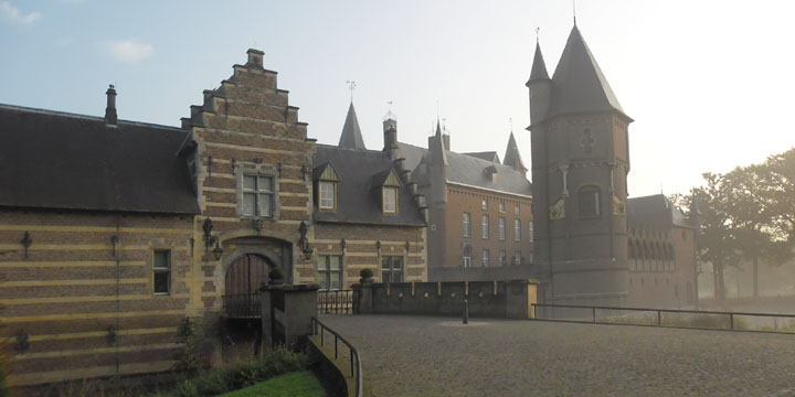 kruisspin, fraaie heksenkring Vanaf Seldensate kunnen we het Hertogenpad volgen naar de auto. Eerst over het fietspad langs de N279, een rumoerig stukje. Al gauw kunnen we afslaan richting de Aa (wél goed opletten dat je de afslag niet mist!). Zelfs na 1 uur in de middag is het gras nog niet droog. De schoenen zijn dus gisteren beslist niet voor niets ingevet. Heerlijk rustig hier, en nadat we de Aa zijn overgestoken hebben we bospaden totdat kasteel Heeswijk weer in zicht komt. |