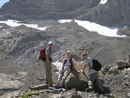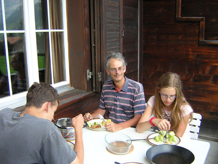 Dag 2: ChilchligletscherInlooptocht in het Simmental is vaak een route naar de Iffigsee. Daarvandaan gaan we naar de Wildhornhütte en nog verder omhoog naar de Chilchligletscher. Dag 3: LeiterliIn het Simmental lopen ze voorop met speciale kinderpaden. Al in 2004 ligt er het Lynxpad (Luchstrail). Volop speelmogelijkheden onderweg! Dag 4: HahnenmoosAltijd leuk, richting Metsch en dan zweefvliegtuigjes kijken bij de Hahnenmoos. Dag 5: RohrbachsteinDe Wildstrubelhütte bezoeken we met z’n allen, de Rohrbachstein is slechts weggelegd voor Hans en Paul. Terwijl de dames op het terras van de hut zitten te wachten, zien ze een kudde steenbokken het sneeuwveld oversteken. Dat hebben de mannen weer gemist. Dag 6: GeltenschussEen uitstapje naar het dal van Gstaad, voor een rondje langs de Lauenensee en de Geltenschuss. Inclusief pauze bij de Geltenhütte. Dag 7: TierbergsattelNet nieuw: het pad over het Tierbergsattel tussen de Fluesee en Iffigenalp. Nogal mistig boven en dus behoorlijk koud! Van kou hebben we in de middag op de Langermatten geen last meer. Dag 8: HorneggliNog een keer het Saanenland in, maar nu te voet via de Reulisenpas. Bij het uitzichtpuntje Horneggli ligt namelijk ook al een nieuwe cache. En ja, we vinden ’m weer als eerste. Dag 9: SeebergseeEen uitstapje vanuit Zweisimmen. In de buurt van het meer zijn alpenhoornblazers aan het spelen. Hoe toepasselijk op 1 augustus! Dag 10: VuurtjesdagNatuurlijk moet er ook deze vakantie gestookt worden. We doen lekker lui, met een koelbox vol eten rijden we naar Iffigenalp. In de buurt van de beek zijn vuurplaatsen genoeg. Hout, dat is een ander verhaal. Met het zaagje van het Zwitsers zakmes wordt een aardig dikke tak op maat gemaakt. Dag 11: MattenRondje Fermeltal met blik op Matten. Het vakantiehuisje waar Hans zo vaak met zijn ouders logeerde, is er nog steeds. Dag 12: ThunSlechts één foto van ons bezoek aan Thun, en daarom aangevuld met een picknickfoto van een andere vakantiedag. Dag 13: AmmertenFanny ruimt het appartement op, de mannen gaan er voor de laatste dag tegenaan. Even op en neer naar de Ammertengrat. Geen uitzicht, veel wolken en heel veel alpensalamanders. Dag 14: Rundum HauseHet appartement Steinbock is lekker ruim, met een fijn balkon om met z’n vieren op te eten. |