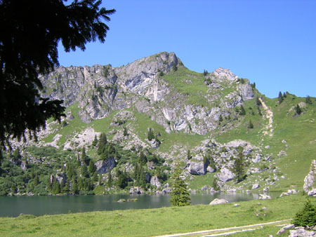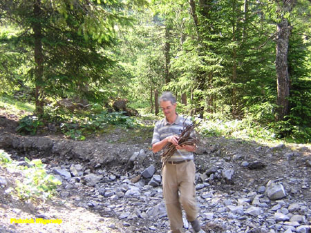 Na diverse vakanties in Grindelwald en Kandersteg, mag er ook wel eens een keer een ander dal aan de beurt komen. Lenk? Hans aarzelt. Het Simmental kan hij natuurlijk drómen, na al die vakanties in Matten met zijn ouders. Toch wagen we het er een keertje op, en gaan met de kinderen twee weken naar dat overbekende Lenk. Dag 1: Ommetje dalEen heel fris ommetje dit jaar, want bij aankomst is het druilerig. We zijn wel naar Siebenbrunnen gelopen, maar een foto is dat niet waard. ’s Avonds kriebelt het geocaching-virus: niet ver van de Lenkersee ligt een splinternieuwe cache. We loggen ’m als eerste, onder de paraplu.
