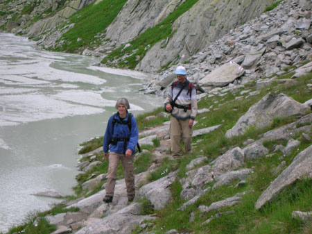 Dag 1: Rondje HaslitalNa de reis vanuit Nederland eerst uitpakken bij Chalet Bernadette en daarna het traditionele ommetje door het dal. Meiringen ligt laag, en mist daardoor een beetje het bergdorpgevoel. Dag 2: BächlitalhütteEerst met de auto richting Grimsel, en daar verder omhoog. Het hutje dat vandaag ons doel is, ligt mooi op een rotskop. Dag 3: EngelhornhütteGeen echt lange tocht, wel één van de bekendste van het dal: langs de Reichenbachfall waar Conan Doyle zijn superheld Sherlock Holmes liet omkomen in een gevecht met Professor Moriarty. Daarna door naar de Engelhornhütte. Dag 4: BrienzIn onze vroege Zwitserlandjaren gaan we nog niet elke dag uit wandelen, we gaan soms wel eens een dagje slenteren door een stad of dorp. Fanny en Karin tuffen zodoende met de trein naar Brienz - en komen daar een oude schoolvriendin van Karin tegen! Terwijl de jongedames met de waterfiets de Brienzersee op peddelen, kletsen de ouders bij aan de waterkant. Dag 5: TriftbrückeEen van de toptochten van deze vakantie (misschien wel van álle Zwitserlandvakanties): omhoog naar de Triftbrücke en natuurlijk even naar de overkant! Gelukkig zijn we gewend om omhoog te lópen, want als je hier de lift wilt nemen sta je wel even in de rij. Dag 6: GrubenhütteVeel Zwitserse berghutten hebben een hoog schattigheidsgehalte maar sommige zijn spuuglelijk. Bijvoorbeeld de Grubenhütte. Daarom staat-ie ook niet op de foto. Met de tocht ernaartoe is niets mis. Dag 7: SätteliEen rustige ‘day after’ in de buurt van de Tällihütte. Dan wil Karin ook nog wel mee. Dag 8: ThunAlweer een dag naar de stad. Op de foto’s afgaand, zou het overal kunnen zijn. Maar ja, mussen voeren: dat is typisch Thun. Dag 9: LauteraarhütteEen topper in de mist, en daardoor net iets minder tóp. Van de samenstromende gletsjers bij de Lauteraarhütte is helemaal niets te zien. Maar de kudde gemzen maakt veel goed. Veel dieren, en helemaal niet schuw. De stuw in de Grimselsee is zonder meer indrukwekkend. Dag 10: MuggestutzHet kinderpaadje, de Zwergenweg, is ook zo’n verplicht nummer in het Haslital. ’s Avonds vuurwerk als toetje, want het is 1 augustus! Dag 11: RegenEén dagje regen, dat komt in Zwitserland regelmatig voor. Dag 12: RegenMaar twéé dagen continu nattigheid, dat is (gelukkig) zeldzamer. Zelfs boodschappen doen gebeurt in een plensbui. Dan maar lezen, en een fotootje van droger tijden. Dag 13: AxalpEen tocht naar Axalp, over de Schnitzerweg. Leuk houtsnijwerk onderweg maar ... fototoestellen vergeten! Toch weten we zeker dat dit de route van 4 augustus was, want we hebben immers de geocache aan de Schnitzerweg gelogd. Dag 14: VuurtjesdagTraditioneel onderdeel van de vakantie: worstjes braden. Niet ergens hoog in de bergen maar bij een Feuerstelle in het dal. Toch leuk, en lekker! |